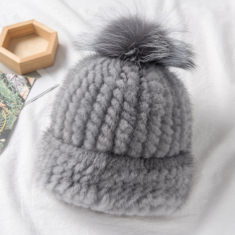 부담스럽지 않은 크기의 실버 폭스 방울 장식이 귀여운 밍크 비니에요 .