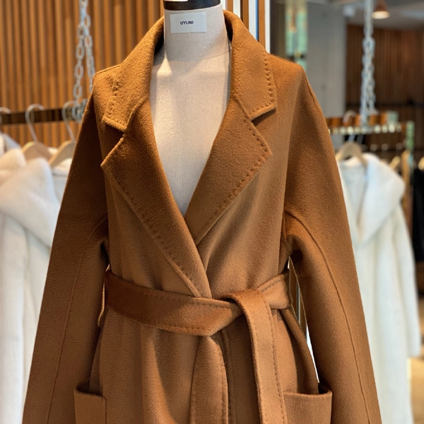 핸드 스티치 공법이 더욱 고급스러우며 안감이 없는 캐시미어 코트입니다.