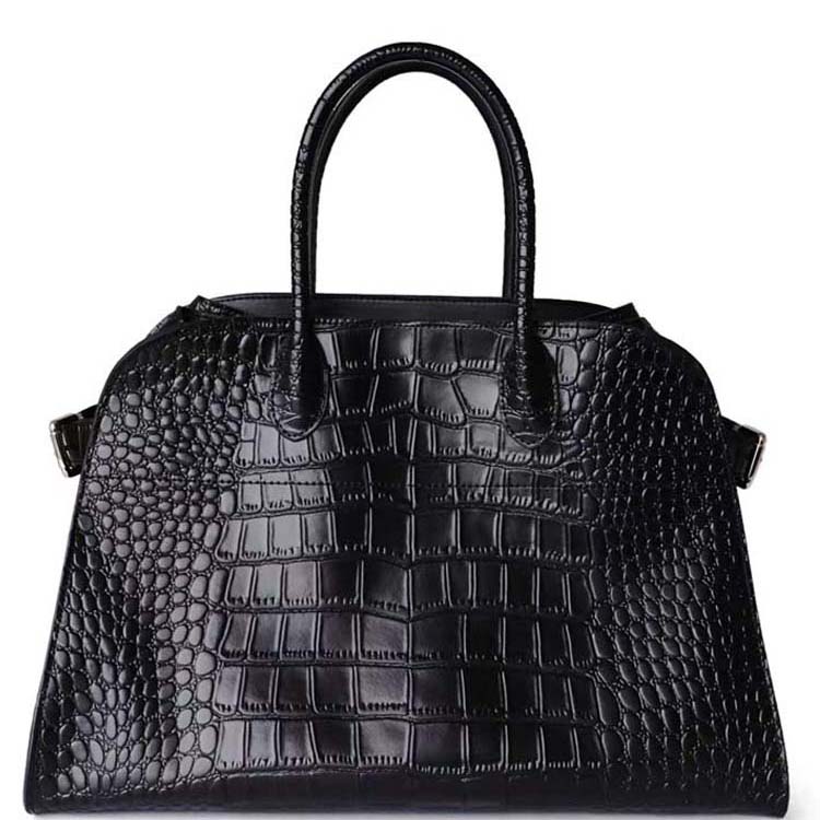 블랙 크로커다일 엠보싱 카프스킨에 실버 하드웨어가 세련되게 돋보이는 럭셔리한 토트 핸들 백입니다.